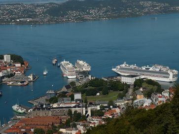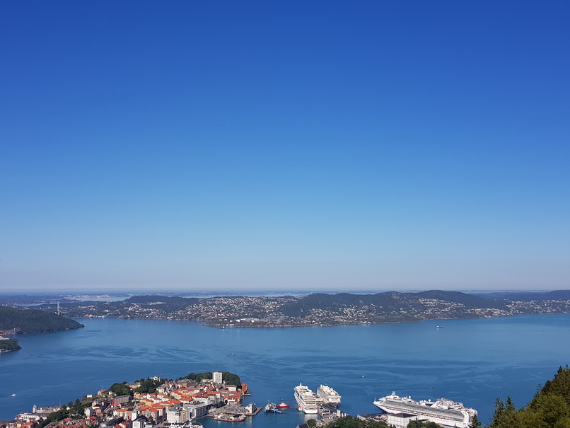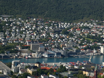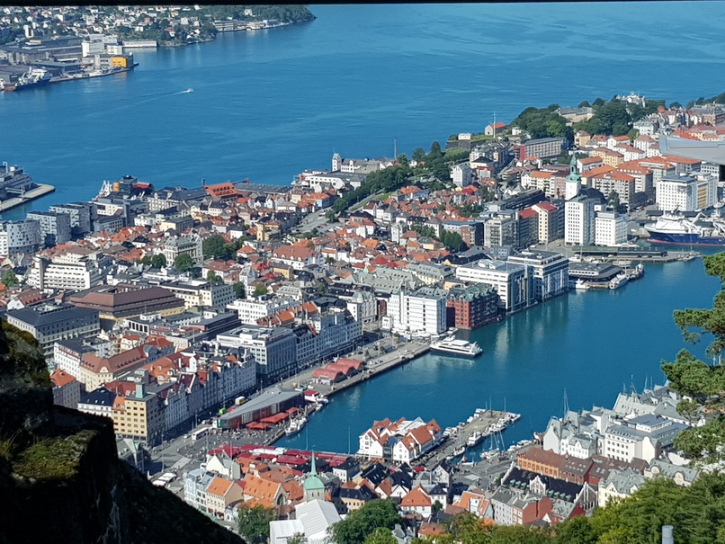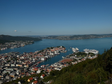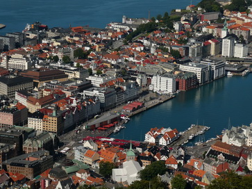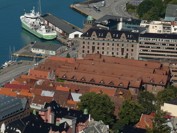 | Restaurant Bergen Hausberg Fløyen Talstation Fløi-Bahn | Bergen blick von Oben |
