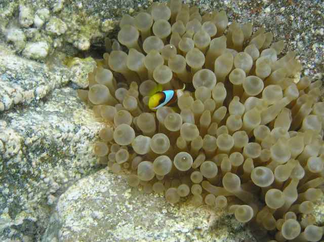 Seeanemone mit Zweibalken-Anemonenfisch Royal Diving Club Aqaba Hausriff