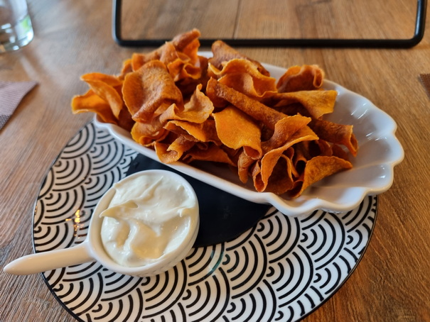 | Kais restaurant Schloss Homburg Tomate Basilikum | Kais restaurant Schloss Homburg Süßkartoffel-Chips |