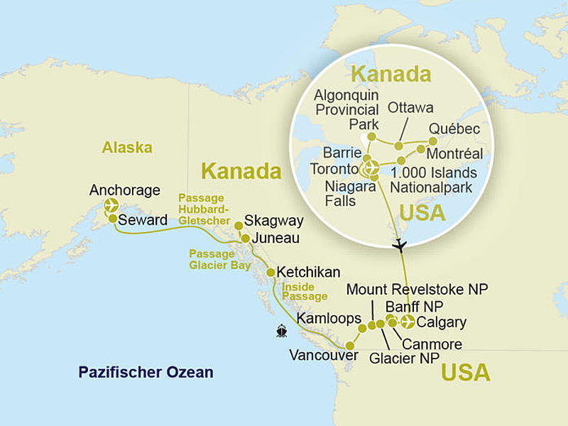 Kanada Kanada & Alaska.        Kanada-Rundreise & dann 7 Tage  Kreuzfahrt mit der Norwegian Jewel bis Seward.