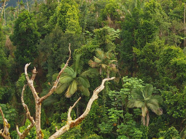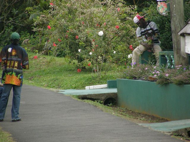 Ein schöner Wanderweg zu den Concord Falls geht etwa 500m vor dem Ende des Wanderweges zu dem Mount Qua Qua links ab. Im Besucherzentrum kann man manchmal einen Führer bekommen (Preis vorher verhandeln), jedoch kann man diesen Weg auch gut selber finden: Der Wanderweg führt vom Wanderweg zum Mount Qua Qua zunächst bergab in westliche Richtung. Bevor dieser - 10m weiter - wieder bergauf führt, rechts im Gebüsch den kaum sichtbaren Trampelpfad suchen und nicht dem breiten Weg wieder rauf folgen, der nach einigen hundert Metern immer schlechter begehbar wird und sich irgendwann auch ganz verliert. Ist man rechts nach Norden abgebogen, folgt der Weg bald einem ganz kleinen Bach, der zu den Concord Falls fließt und dem man immerwieder überquert oder auch ein paar Meter nebenher folgt. Nach etwa einer halben Stunde vereinigt sich dieser Bach mit einem Bach aus Osten und fließt nun nach Westen. Hier dem Bach runter nach links folgen. Der Weg führt nun manchmal auch einige zig Meter rechts neben dem Bach, so daß man ihn nicht immer sieht oder hört. An dieser Stelle ist der Weg zunächst wieder leichter erkennbar. Nach einiger Zeit geht rechts ein Weg ab nach oben. Dieser verliert sich jedoch nach etwa 100m im Wald. Daher links dem Weg runter zum Bach folgen. Dieser Bach muß dann bald gequert werden. Der Weg wird unübersichtlicher, bleibt jedoch immer in der Nähe des Baches. Der Bach muß dann wieder gequert werden und der Weg geht nun deutlich höher als der Bach weiter. Bald kann man das Meer sehen und der Weg geht über Treppen steil bergab. Zunächst sind es einfach Bretter, später in Stein gehauen. Hier war der Weg durch ein Kabel gesichert. Am Ende muß der nun deutlich breitere Bach gequert werden. Links geht es zu dem zweiten und dritten Wasser Fall von Concord, rechts zum ersten und zum Ausgang aus dem Urwald. Nach einigen Querungen des Baches kommt man zum ersten Wasserfall und zu einer geteerten Straße. Wenn man rechtzeitig hier ist, kann man mit einem Bus zurück fahren, ansonsten muß man die etwa 3Km lange Straße runter zu Concord folgen und auf der Hauptstraße den Bus nehmen. Dieser Wanderweg sollte nur bei guten Wetter gegangen werden, da gerade die in Stein gehauenen Treppen am Ende sehr steil sind. Wanderzeit ca. 5 Std.