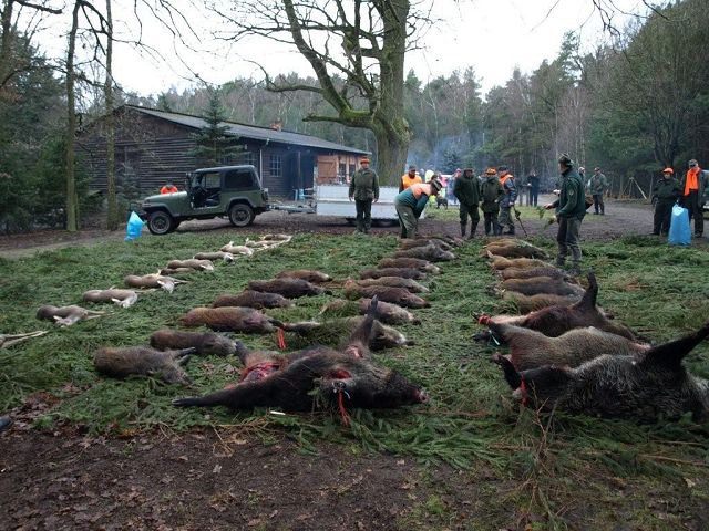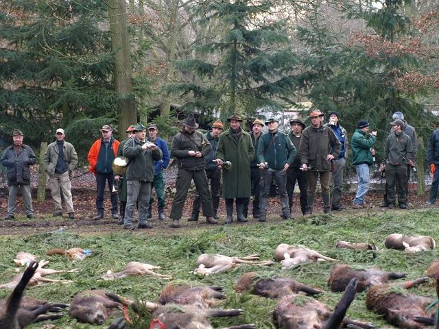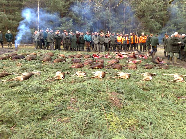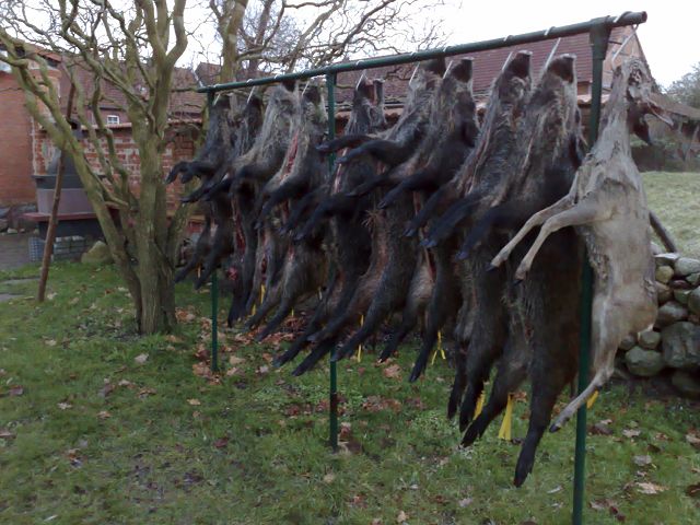 Gesamtstrecke in Karthan  2 Rothirsche 30 Sauen 10 Rehe 2 Füchse 1 Hase  Strecke hängen