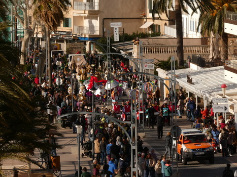 | größte Karnevalsumzug der Insel statt: Die Sa Rua in Palma. | Karnevalsumzüge, Rua (Straße) oder Rueta (kleine Straße), im 1900 jahrhundert Ursprung im Mehlwerfen von den Maskierten Carnestoltes |
