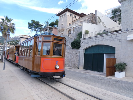 Fahrt von Palma mit dem Zug und der Straßenbahn verbindet.
