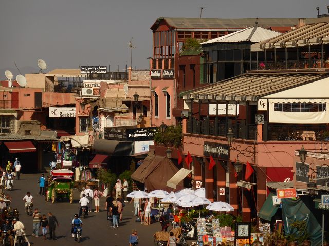 | Marrakesch Djemaa el Fna-Platz "Platz der Geköpften" Cafe de France unser Hochsitz | Marokko Marrakech Maroc Marrkesch Djemaa el Fna-Platz "Platz der Geköpften" |