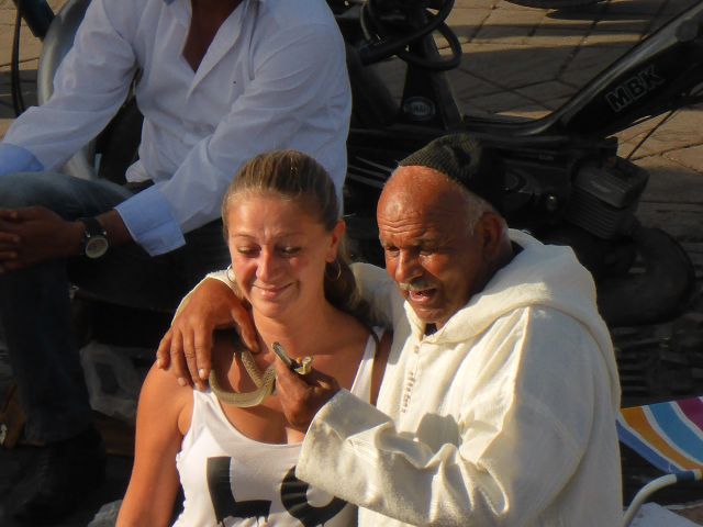 | Marokko Marrakech Maroc Marrkesch Wasserträger | Marokko Marrakech Maroc Marrkesch Schlange um den Hals |