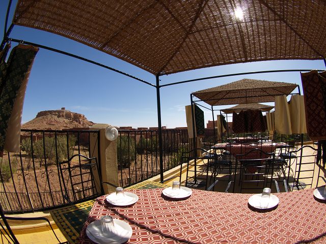 Ait Benhaddou Blick auf Tafelhügel vom Restaurant Ait Benhaddou