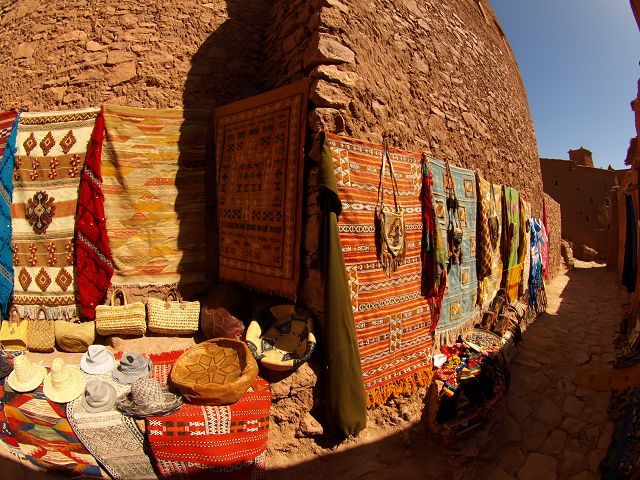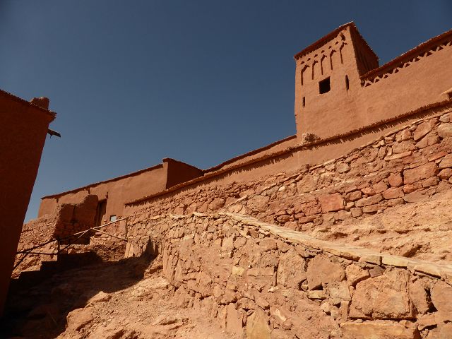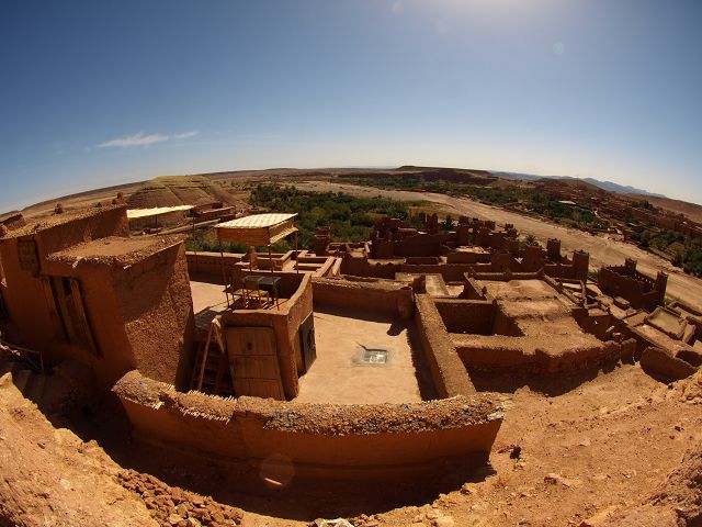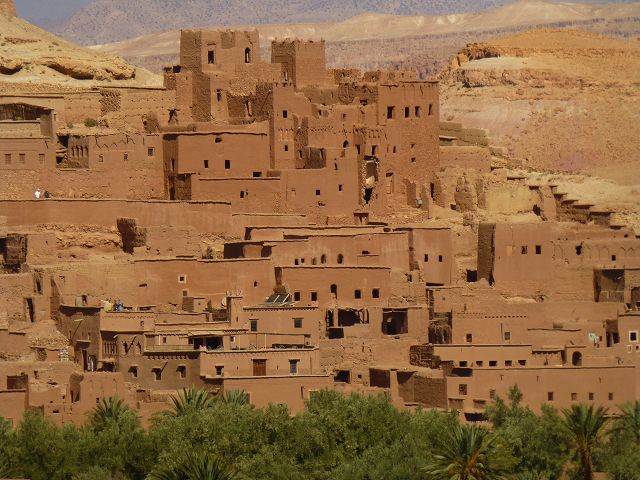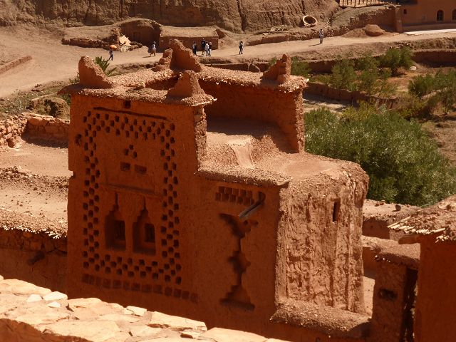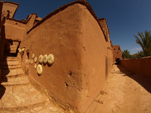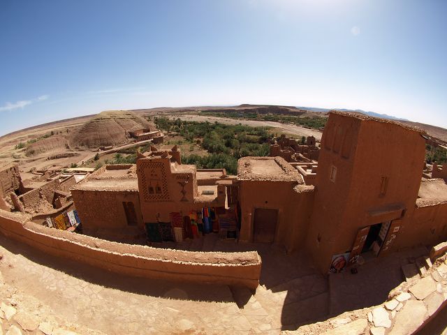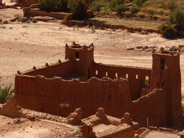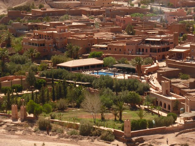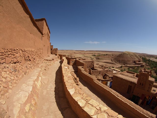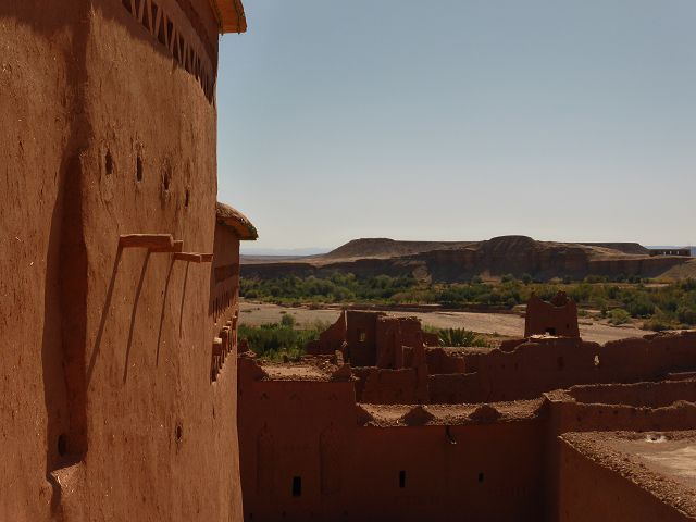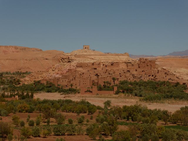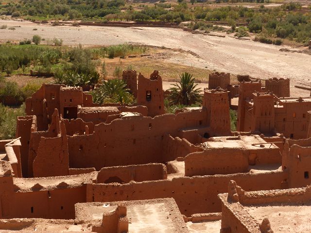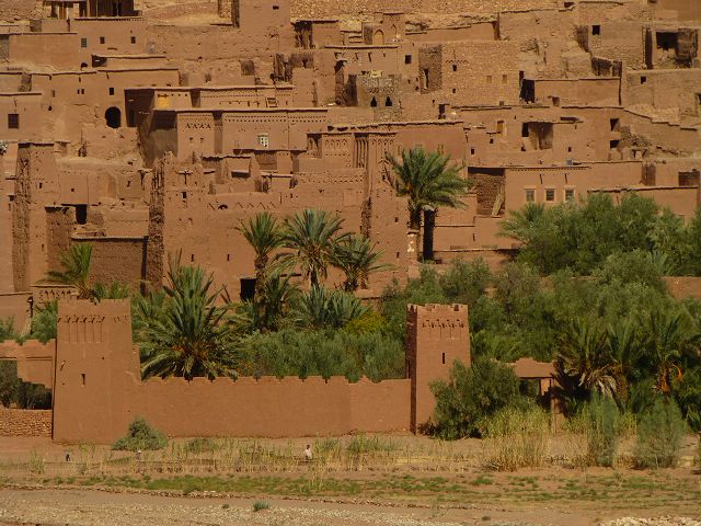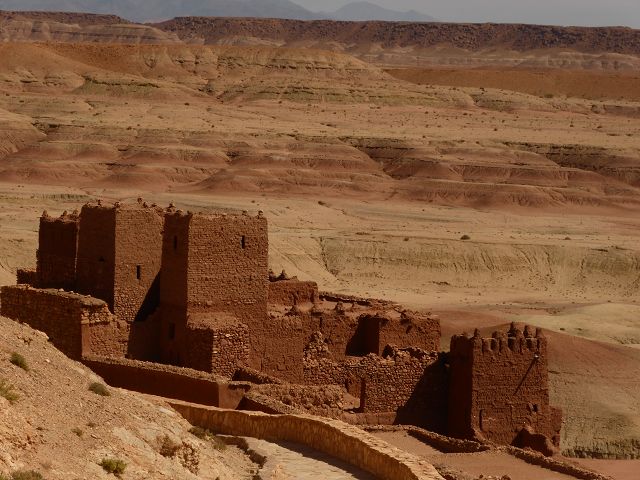 am Berghang gelegenes Ksar ,befestige Wohnanlage aus halbwegs gut erhaltenen Lehmbausiedlungen eng aneinander gebauten und teilweise ineinander verschachtelten Wohnburgen aus dem 1100 Jahrhundert an der alten Karawanenstrasse von Timboctou nach Marrakech  30 km nördlich von Quarzazate entfernt , Schauplatz für über 20 Spielfilme  Gladiator , Sodom + Gomorrha  Alexander etc.