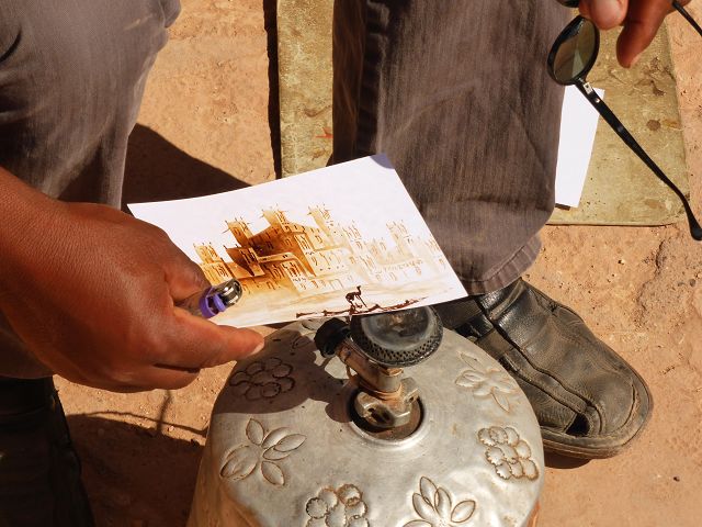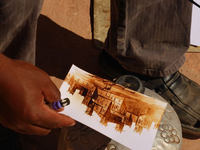 Ait Benhaddou Hennazeichnung Enstehung des Hennabildes mit Flamme Ait Benhaddou Hennazeichnung Enstehung des Hennabildes mit Flamme