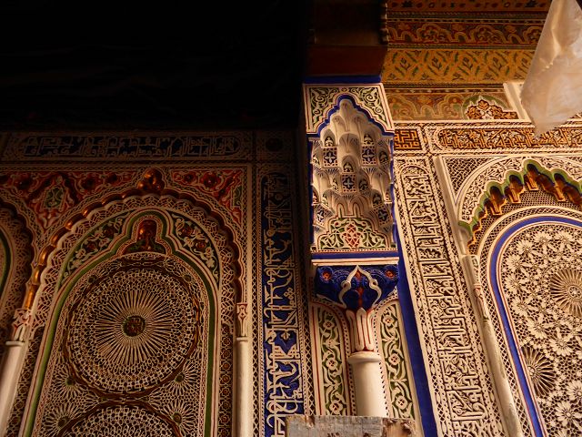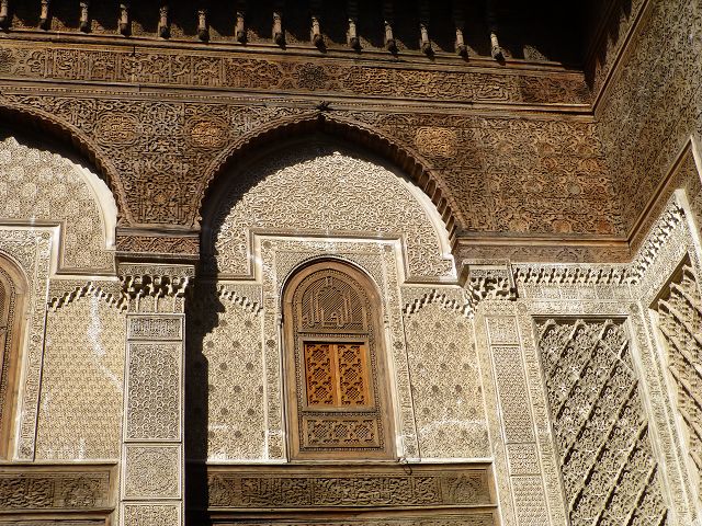 Ich bin der Sammelpunkt aller Wissenschaften. Mache aus mir dein Heim und du wirst, wie du hoffst, ein einzigartiger Wissenschaftler werden", dies ist eine der typischen Inschriften, die man auf den Kacheln der Bou Inania-Medersa findet. Sie wurde von dem merinidischen Sultan Abou Inane in den Jahren 1350 bis 1357 erbaut. Sie ist sowohl eine Koranschule als auch eine Große Moschee mit einem hohen Minarett und einer bemerkenswerten Kanzel. Im gesamten Gebäude ist der Eindruck der Perfektion wahrzunehmen. Die Feinheit und Vielfalt der Farbtöne, die den weissen, rosaroten und hellblauen Marmor mit den grünen und schwarzen Kacheln vereinigen, verleihen dem Ganzen eine unvergleichliche Harmonie. Auf Regalen aus bearbeitetem Zedernholz sind die Bronzeteile eines ehemaligen Carillons zu sehen.