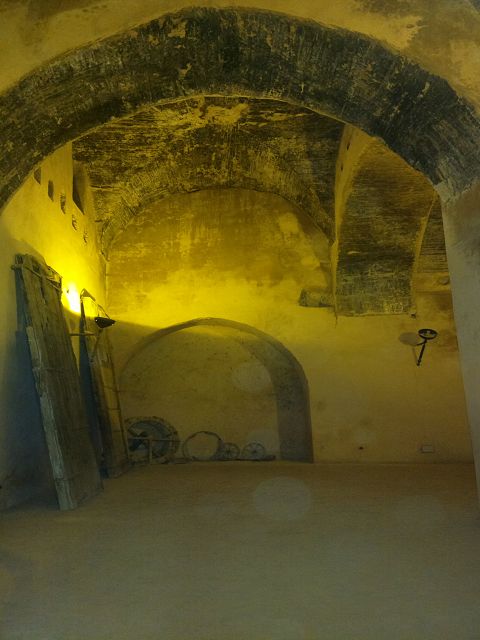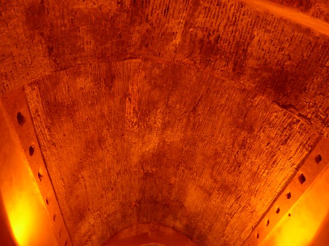 Meknes Heri Dar el Ma, Riesiges Mauergewölbe Deckenstruktur mit Rohrlagen  Meknes Heri Dar el Ma, Riesiges Mauergewölbe Vorratsspeicher