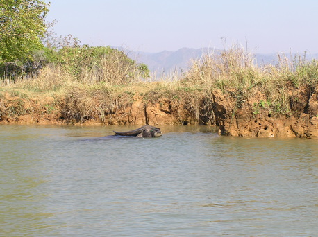 Wasserbüffel in seinem Element   Indein Pagodenkomplex