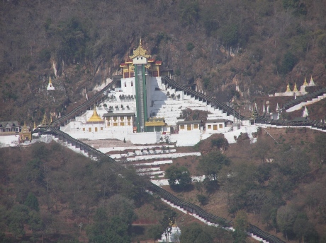 Eingang der Höhle über Stufen oder einen gläserenen Aufzug Pindaya Shwe U Min Pagode