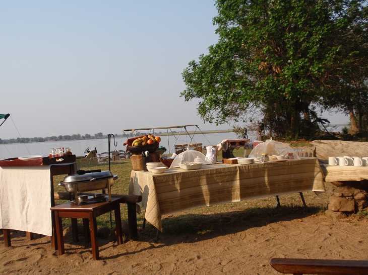 | Chiawa Lodge | Frühstück am Zambesi |