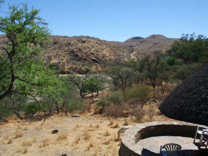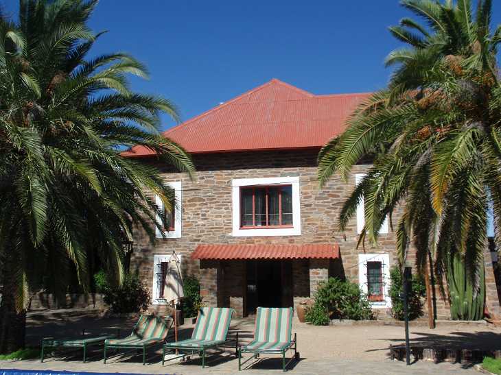 Erste und somit älteste Gästefarm Namibias an der historischen "Bay Road" (=Ochsenwagenweg), auf Ihrem Weg zu Etoscha oder Swakopmund. Das aus Naturstein gebaute Farmhaus aus der Siedlerzeit bietet einen fantastischen Ausblick in die umliegende Savanne des privaten Naturschutzparks mit vielen wilden Tieren wie Giraffe, Zebra, Nashorn, Leopard , gepard usw.