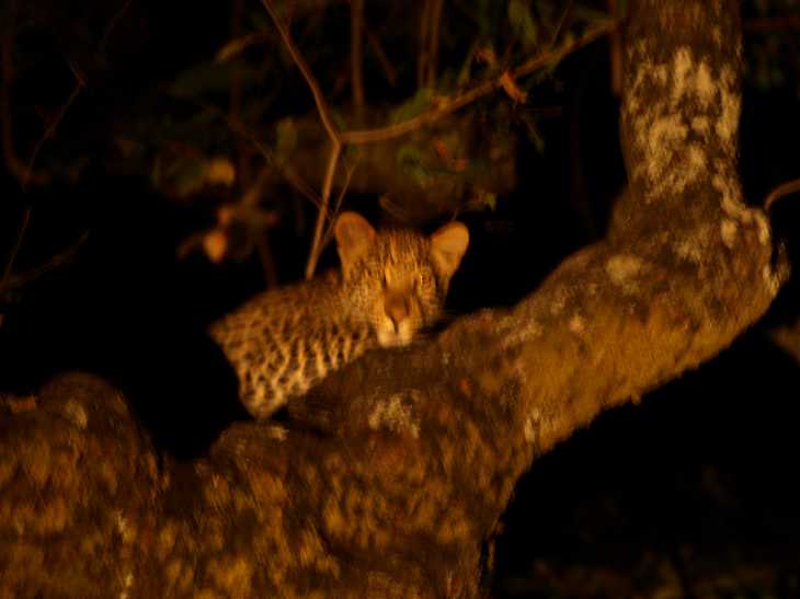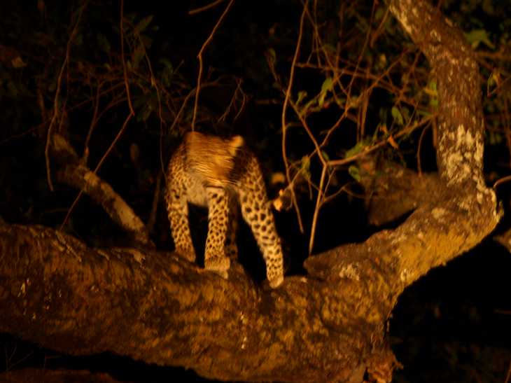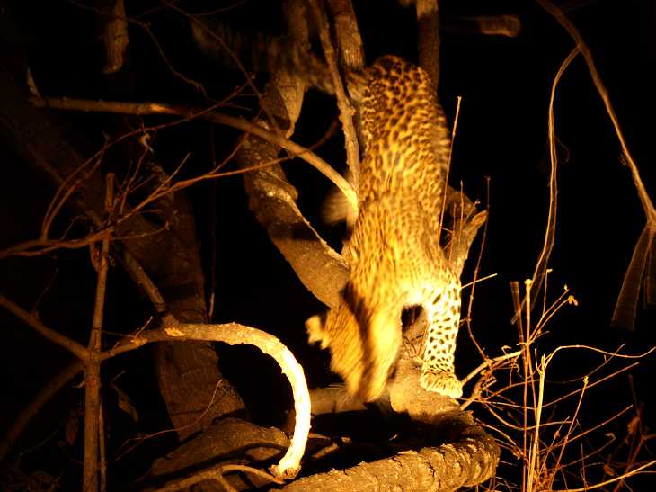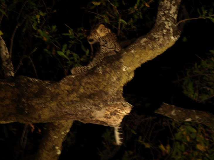 Leopard auf dem Leberwurstbaum junger Leopard  Night Gamedrive