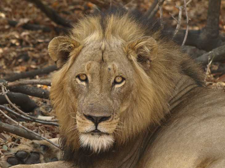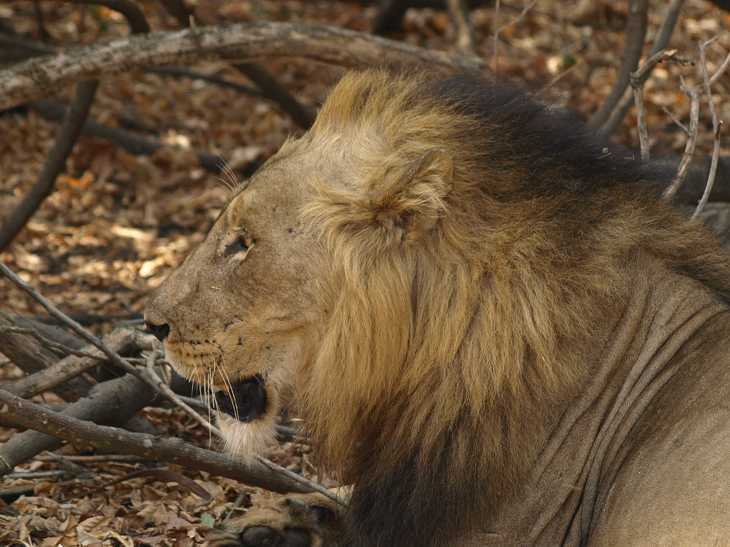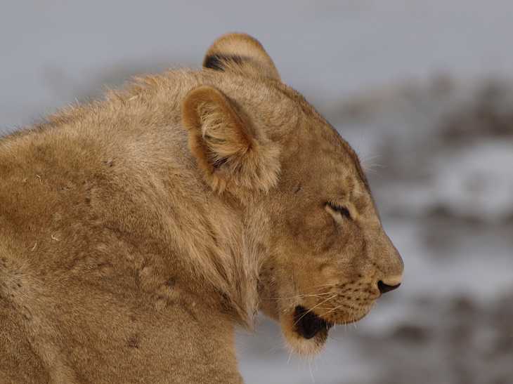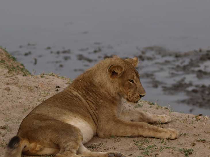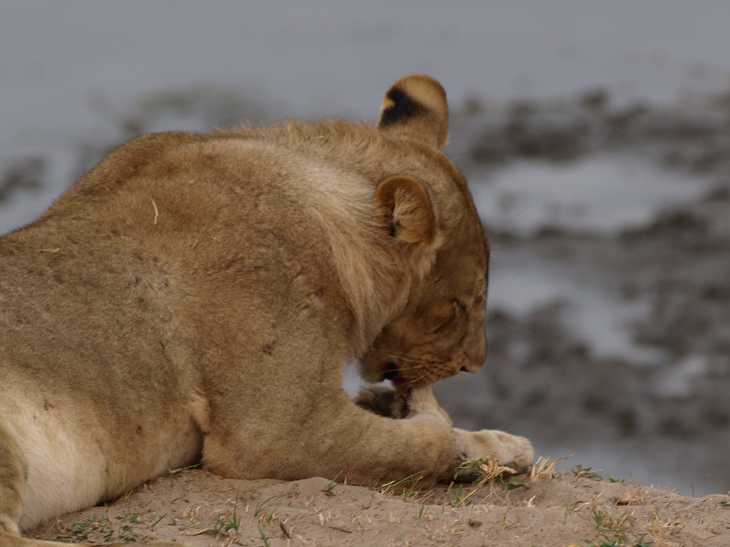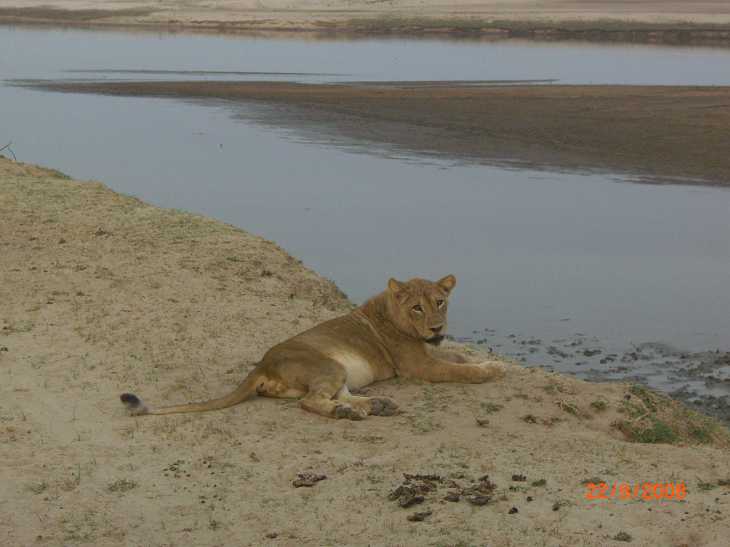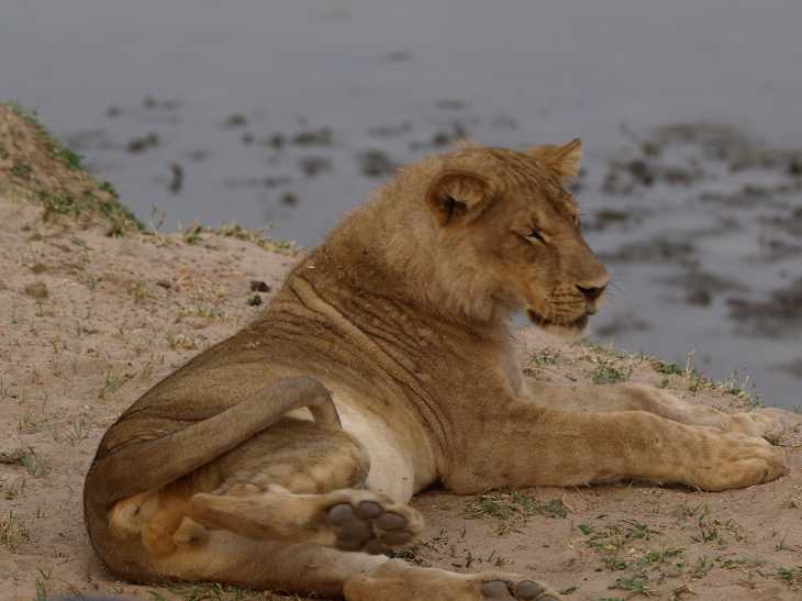 Löwe auf der Sandbank Löwe satt von Zebramahlzeit