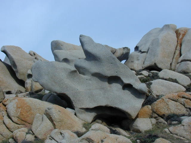 Capo Testa Tafoniverwitterung der Steine Cala Spinosa Cimitero dei Sassi – „Friedhof der Steine“ stone cemetery w Paarung der Steine