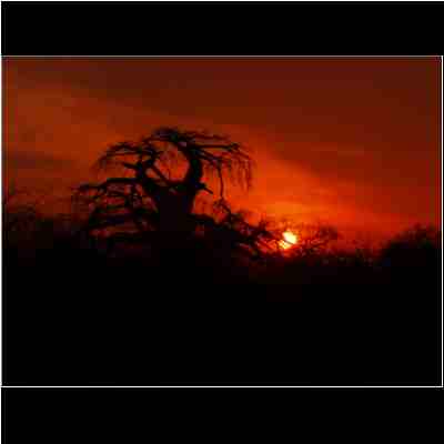 | Klein Bolayi Game Lodge Sonnenuntergang mit baobab | Klein Bolayi Game Lodge Die 4-Sterne-Lodge Sonnenuntergang mit baobab |