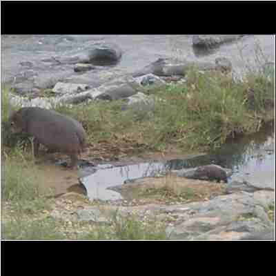 Herde mit über 50 Tieren am Aussichtpunkt Olifantsriver Kämpfende Jungbullen Neugeborenes Flusspferdchen ca 1 Woche alt