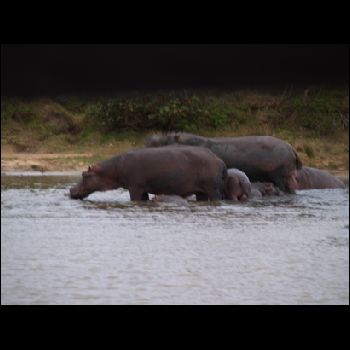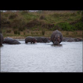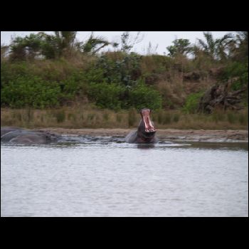 auf der Rückseite die Lagune mit Flusspferden und Krokodilen und Süsswasserhaien