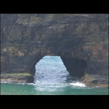 Felsen, wo man durchsehen kann und mit einem Boot durchfahren kann.