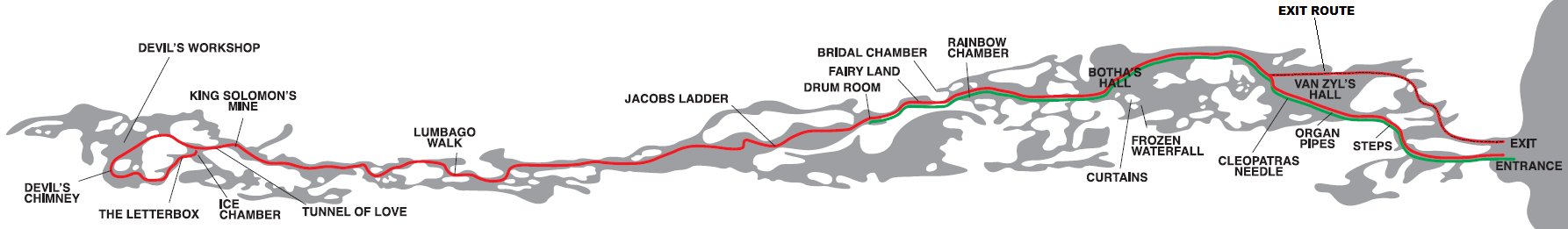 cave system, requiring some crawling and squeezing through tight spaces. The Cango Caves are also an