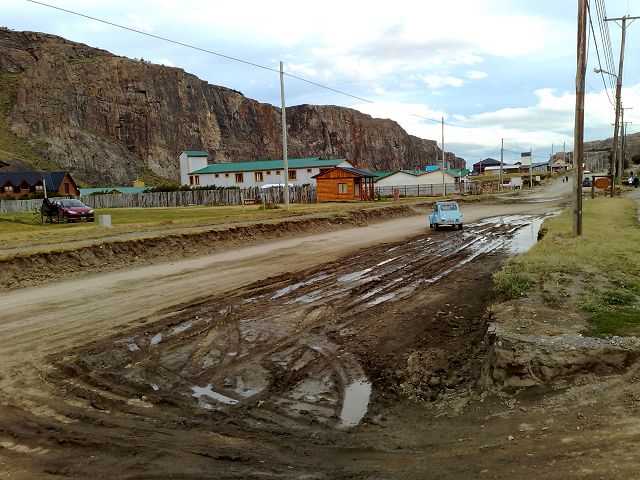 Mainroad El Chalten in 2008 wurde gerade erneuert mit Bürgersteig in der Bierstube