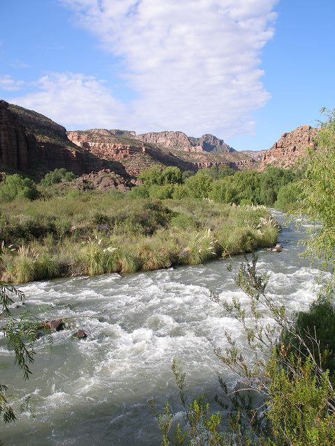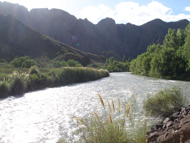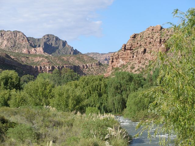 Valle Grande Straße zum Rincon de Atuel  ( Rafting,Reittouren, Fischen , Wandern )  man fährt immer entlang des Flusses hoch zum Stausee