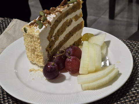 | Restarant El Drago im Hotel kuchen + Eis + Früchte | Restarant El Drago im Hotel Nachtisch Dulcetarta |
