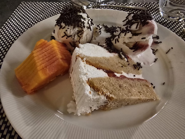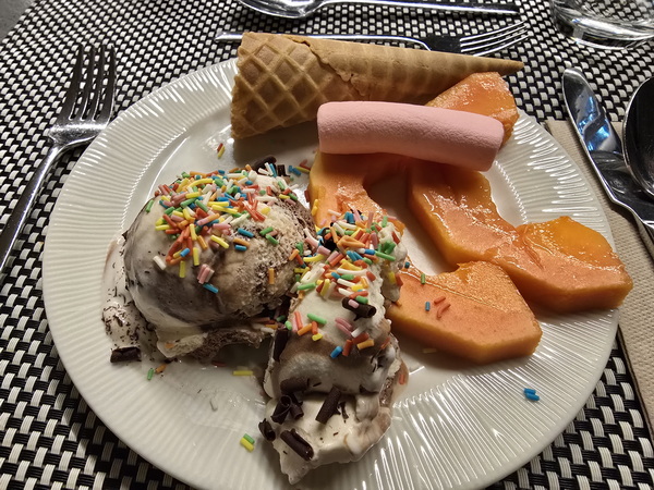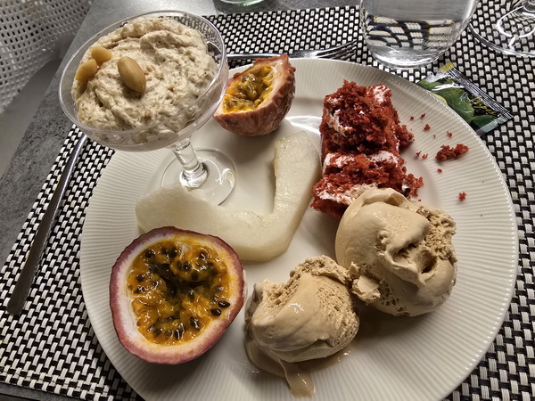 | abendessen Cena mit el Grifo von Lanzarote | nachtisch Mrschmellow con gelato Papaya |