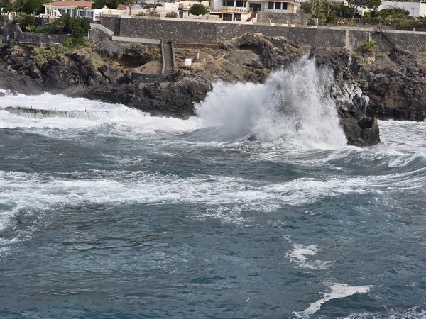 | Charco de Isla Cangrejo sehr hohe Welllen | Charco de Isla Cangrejo Wellenwarung Meerschläge bis 9 m |