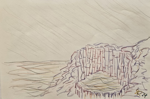 | Lavafelsenhöhle an der Küste Tacon von teneriffa Orgelfelsen Meereshöhle Zeichnung Zeichnung Höhlenzeichnung | Painting |