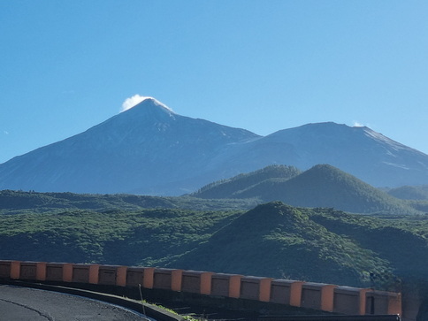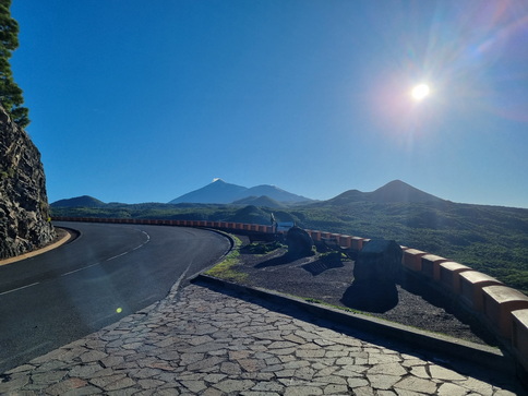 | Teneriffa Santiago del teide Teide volcano mit Baskenmütze | Teneriffa Santiago del teide Mirador del Teide Montanas Negras |