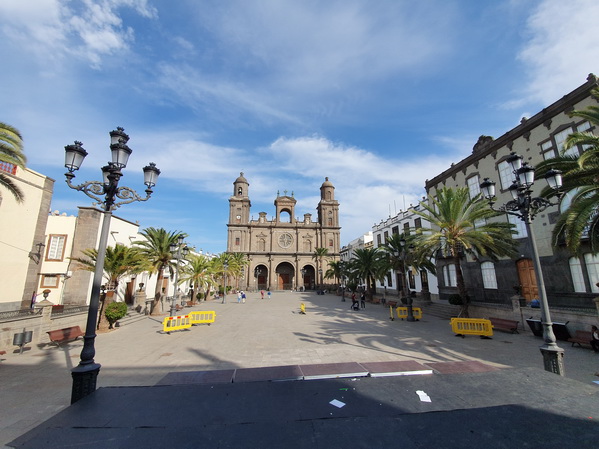 Die Kathedrale Santa Ana finden Sie im Herzen von Las Palmas an der Plaza de Santa Ana. Diese Kathedrale ist ein monumentales Bauwerk aus der Kolonialzeit. Sie wurde ab dem Jahr 1497 erbaut und besteht aus fünf Schiffen. Zwei prächtige Glockentürme verzieren rechts und links den Giebel des sakralen Gebäudes.Der Fertigstellung der Kirche dauerte fast 400 Jahre und reichte durch die Epochen der Gotik, Renaissance und Neoklassik hindurch, welche sich alle im Bauwerk der Kathedrale widerspiegeln. Die Kapellen im Inneren beherbergen viele außergewöhnliche Kunstwerke. Drei große Torbögen ermöglichen den Zugang zu diesem Gotteshaus. Sie sind zum Vorplatz ausgerichtet, dem großzügig angelegten Plaza de Santa Ana. Links und rechts mit Palmen geschmückt finden Sie hier Bänke zum Verweilen. Direkt vor dem Platz sehen Sie bronzene Hundeskulpturen. Sie sind die Wappentiere von Gran Canaria.Die Kathedrale beherbergt das Museum der Sakralen Kunst (Museo Diocesano de Arte Sacra), Hauptsächlich Gemälde, eine Sammlung spanischer Skulpturen und wertvolle sakrale Objekte werden hier ausgestellt. Santa Ana ist der Sitz des Bischofs der Kanarischen Inseln.