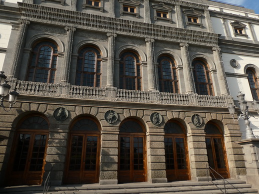 Aus dem ersten Projekt von Francisco Jareño und Alarcón können wir eine sorgfältige neoklassizistische Einheit im "italienischen Stil" erkennen, die sich in der symmetrischen und dreigliedrigen Fassade des Theaters und in der Hufeisenform der Haupthalle widerspiegelt.