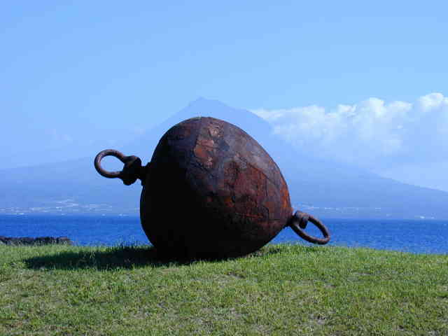 oje boje pico vulcano una tuba ferro Bojenvulkan Berge Vulcanoferro Titel Stahlboje vor Vulkan Sanmiguel Street Art auf den Azoren Skulpturen Stahl &Stein azoren Acores Sanmiguel