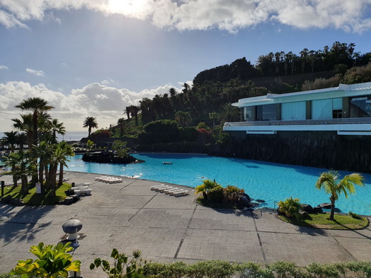 Blick auf das Meer und den Teide bietet. Der See ist von Schwimmbädern