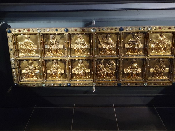 Dom Aachen Karl der Große Schatzkammer 2.0 Sarkophag wo früher die Beine von Karl der Grossen lagen Proserpinasarkophag Dom Aachen Karl der Große Schatzkammer 2.0 Reliquien Bibeleinband mit Gold + Silber + Elfenbein
