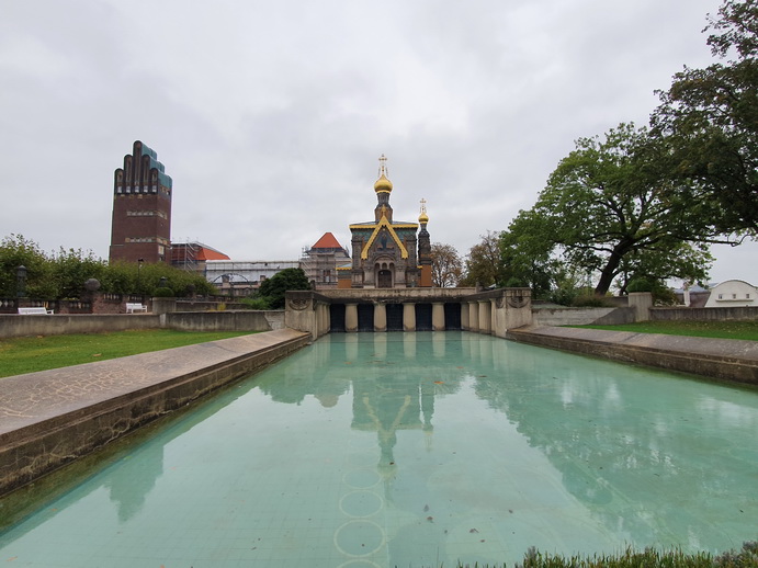 | Darmstadt City Basilika Russische Kapelle | Darmstadt City Mathildenhöhe Schwanentempel |