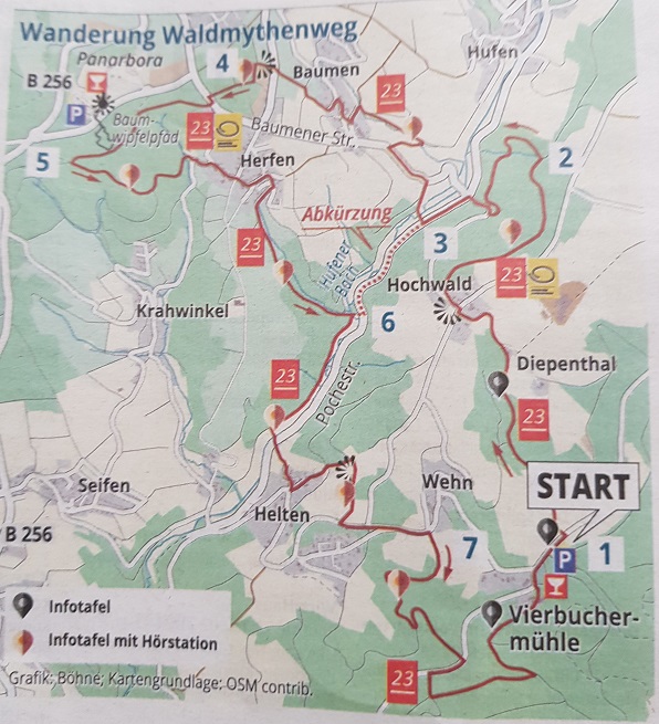 | Vierbuchermühle Wanderparkplatz Grafik Böhne aus OVZ | Vierbuchermühle Wanderparkplatz Waldmytherwanderweg von https://www.bergisches-wanderland.de/de/bergische-streifzuege/alle-streifzuege/23-waldmythenweg-waldbroel-128-km/index.html |