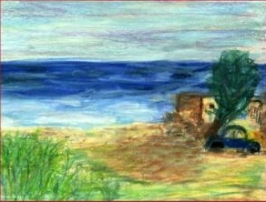 | Strand bei Rethymon auf Kreta in Ölkreide | Berge am Limni Kournas auf Kreta ( Einziger Süsswassersee ) in Ölkreide |