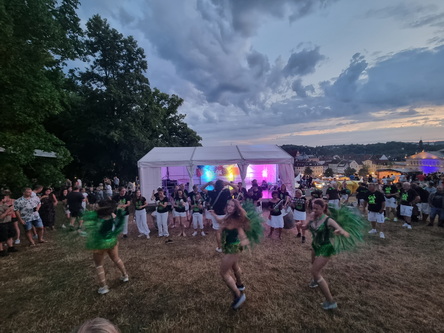 Und man sagt uns nach, dass bei unseren Auftritten stets der Funke auf das Publikum überspringt und keiner mehr stillstehen kann - es sei denn, er hat einen schlimmen Fuß.