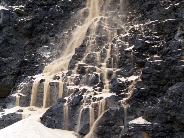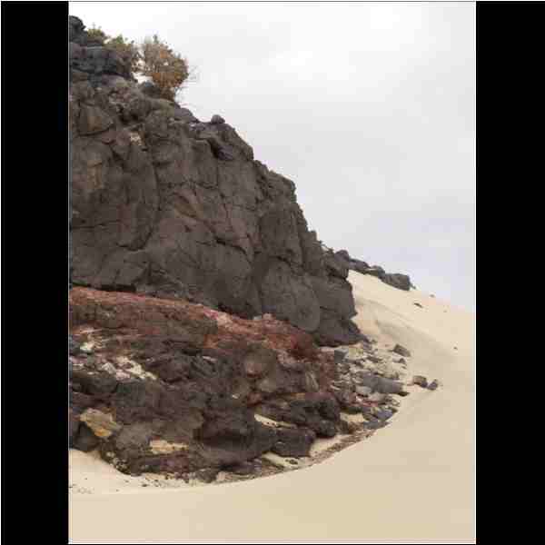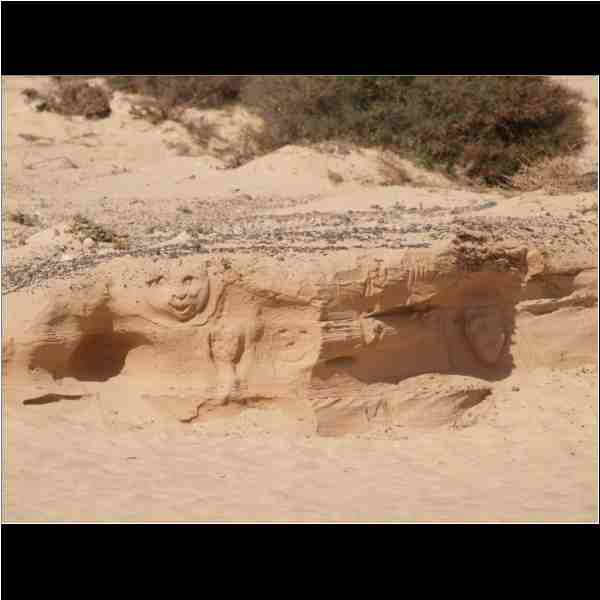 vorbei am Frosch aus Stein vorbei an den Sanddünen mit Steinunterbau