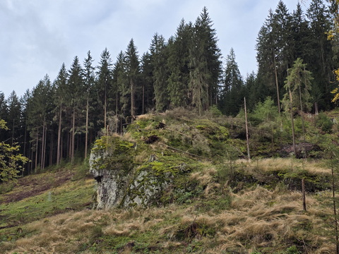 | Salzmannfelsen riesige Fichten Windgeschützt | Thüringer Forstfelsen |