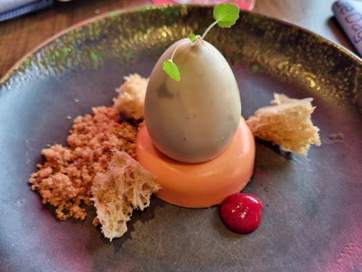 | Holland Ostern 23 Scheveningen Paasdag Dagvisser das Fischrestaurant gefülltes Haselnussei mit weisserschoko + Grandmanier | Holland Ostern 23 Scheveningen Paasdag Dagvisser das Fischrestaurant |