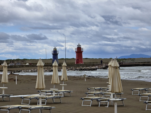 Castiglione  Hafen Strand Stadt Monte Castiglione  Hafeneinfahrt Leuchturm Rot und Blau