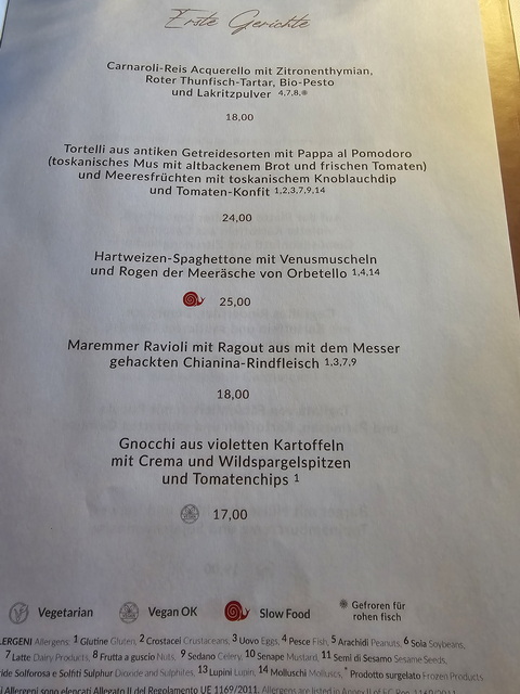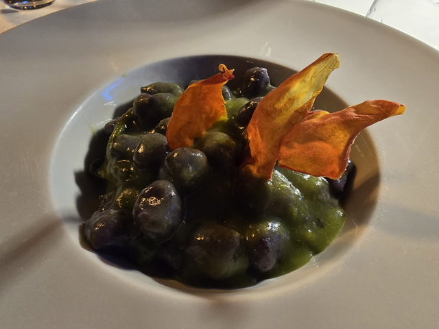 | Ristorante Anfora Di Baratti Maiscreme Pomodori di Collina | Ristorante Anfora Di Baratti Gnocchii aus Violetten Kartoffeln mit Crema und Wildsprgelspitzen und Tomatenchips |