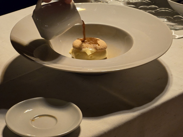 | Ristorante Anfora Di Baratti Choux Croqueline mit Vin Santo Creme und Namelaka aus toscanischem Cantuccio Knusperschicht windbeutel + Liquer | Ristorante Anfora Di Baratti Prosecco Mousse mit erdbeer Minz Coulis |