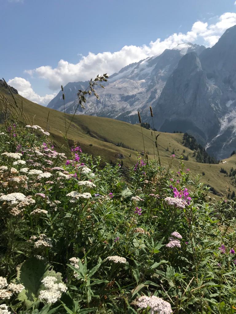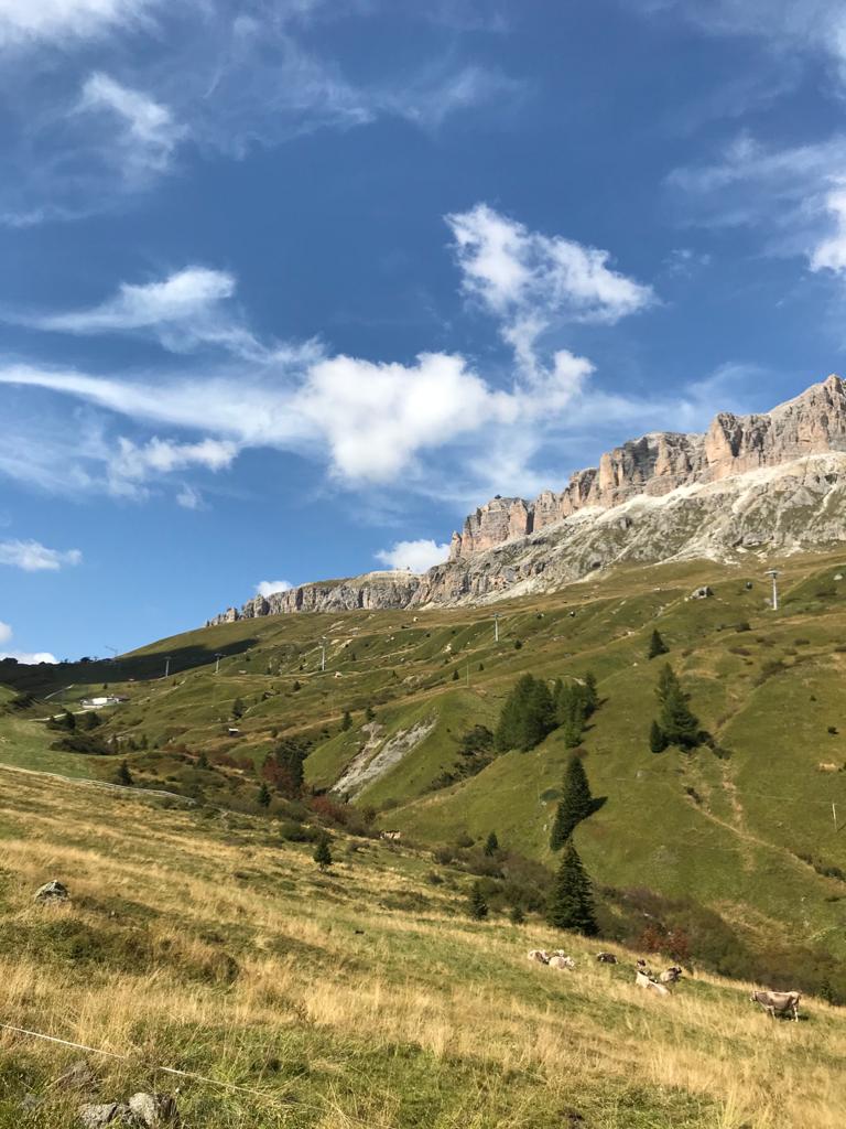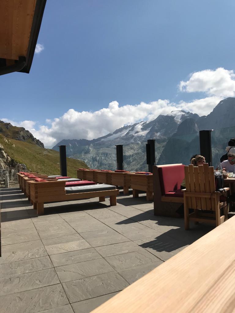 Baita Rodella Hütte befindet sich am Sellajoch im Herzen der traumhaften Bergkulisse der Dolomiten, mit einem wundervollen Panoramablick auf den Gletscher ..